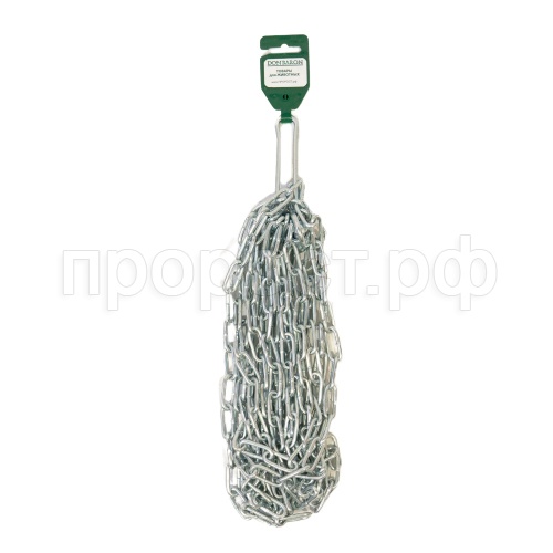 Стальная сварная будочная цепь с длинным звеном, вертлюгом и карабином. Производится из углеродистой стали и обрабатывается цинком гальваническим методом. Диаметр сечения звена 3,5мм.